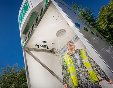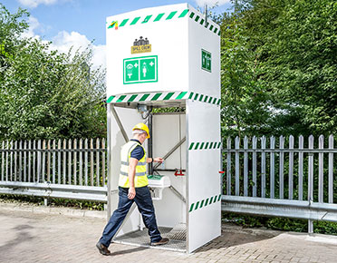 Spill Crew Tank-Fed Safety Showers deliver dependable emergency decontamination where mains water is unavailable, unreliable or lacks sufficient pressure or flow.